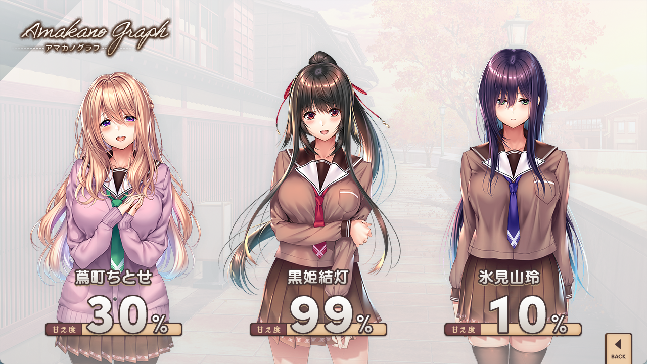 对于这类纯爱单线galgame来说,最美妙的事莫过于所有女主都命中XP。本作对我来说就是如此,这代只有3个女角色,这点对我来说真是太感激了,4、5个女主对我的脑容量和注意力来说都太严苛。3个精心准备女主就好